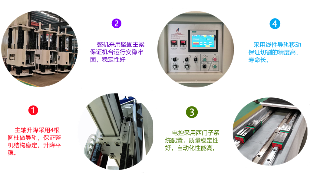 (2) Adopts 4 pillars for spindle sliding, which ensure the structure of the machine is steady and the lifting is stable.